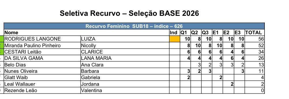 O CTB se destacou na Seletiva Nacional de Base que aconteceu entre os dias 21 e 24 de janeiro de 2026, no Centro de Treinamento da Confederação Brasileira de Tiro com Arco, em Maricá/RJ.